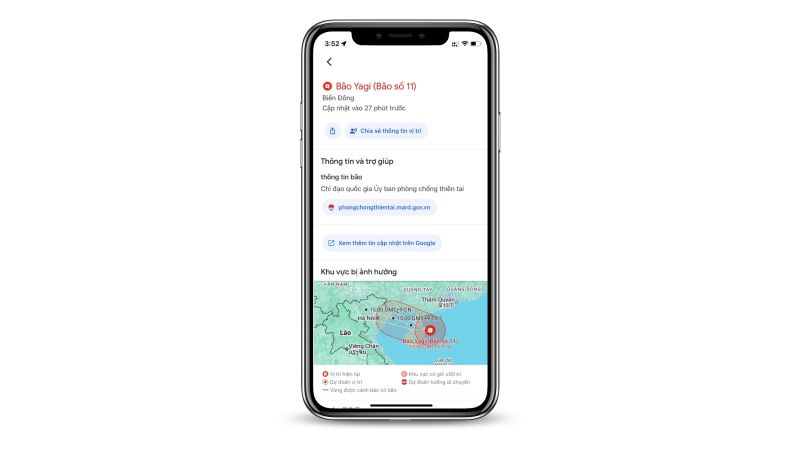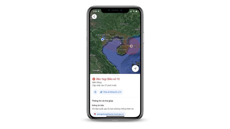Google Maps bổ sung nhiều tính năng cảnh báo cơn bão số 3 YAGI