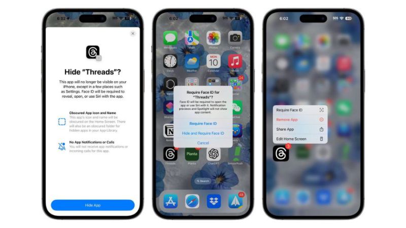 iOS 18 cho phép bạn sử dụng Face ID để khóa và ẩn các ứng dụng nhạy cảm, tăng cường bảo mật cho thiết bị của bạn. Để kích hoạt, người dùng cần giữ vào ứng dụng muốn khoá, sau đó chọn “Yêu cầu Face ID”.