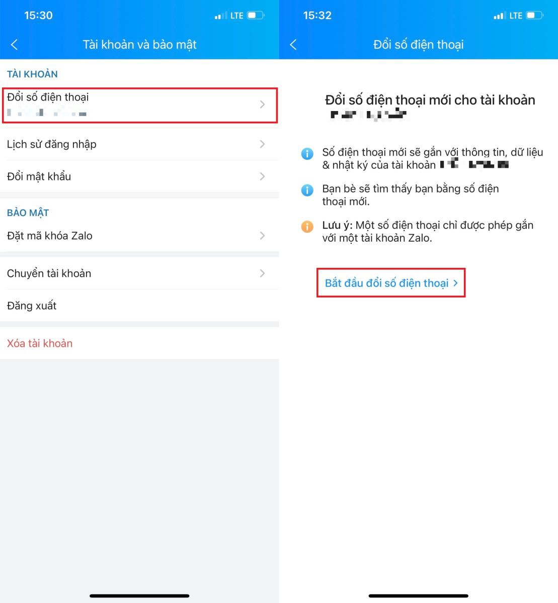 Bước 3: Chọn Đổi số điện thoại --> Bắt đầu đổi số điện thoại