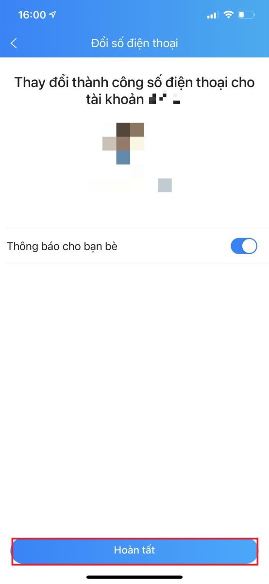 Bước 6: Chọn Hoàn tất khi có thông báo hoàn thành xuất hiện. Tại đây bạn có thể chọn Thông báo cho bạn bè hoặc không, nếu không hãy trượt thanh chọn sang trái.