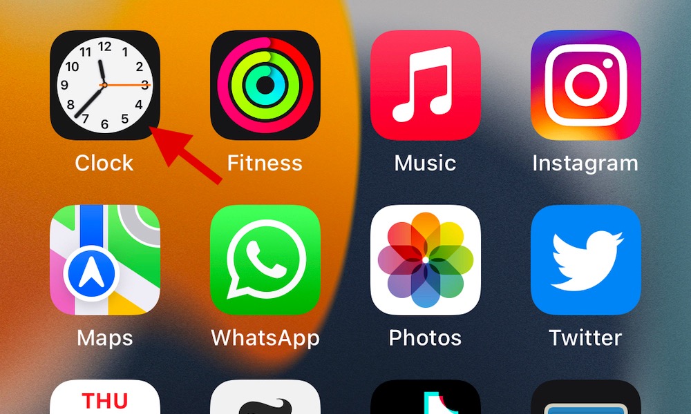 Bước 1: Mở ứng dụng Đồng hồ trên màn hình chính hoặc bạn có thể tìm kiếm trên thanh tìm kiếm spotlight