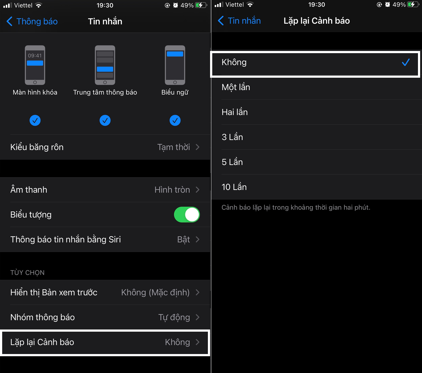 Bước 5: Chọn số lần bạn muốn lặp và chọn "Không" nếu không muốn thông báo nhiều lần.
