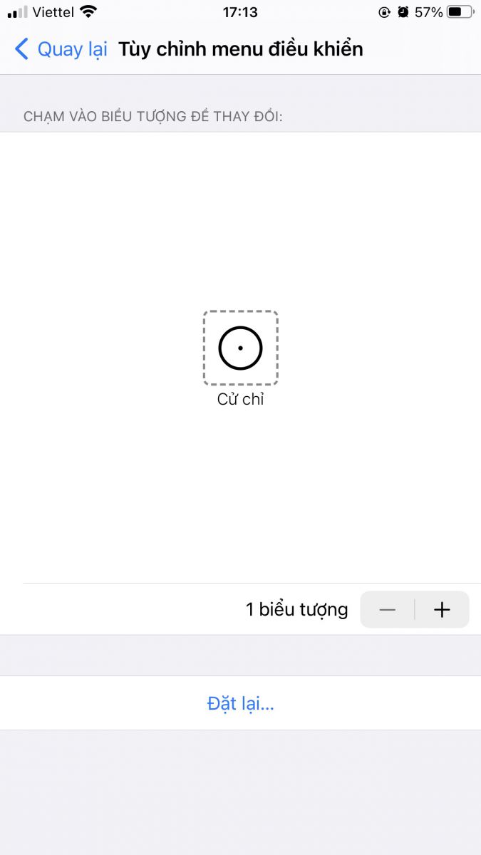 Bước 2: Vào Tuỳ chỉnh menu điều khiển > Click dấu "-" để xoá hết các biểu tượng điều khiển đến khi còn 1 biểu tượng "Cử chỉ"