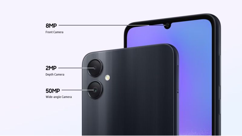Galaxy A05 trang bị 2 camera sau đỉnh cao bắt mọi khoảnh khắc với độ phân giải ấn tượng. Camera chính với độ phân giải 50 MP chụp những hình ảnh chi tiết, bắt nét vật thể nhanh chóng. Người dùng có thể chụp thiên nhiên, chân dung hay thậm chí cả chụp đêm với chất lượng cao