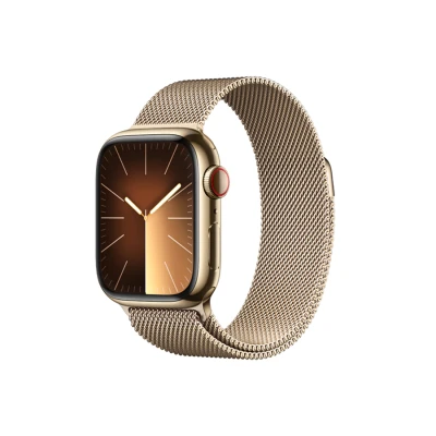 Apple Watch Series 9 LTE 45mm thép milan có thiết kế mặt đồng hồ hình vuông bo tròn các góc. Kích thước 45mm mang đến một màn hình lớn hơn và nặng hơn một chút so với phiên bản 41mm, rất phù hợp cho những người có kích thước cổ tay to, đặc biệt là nam giới. Viền đồng hồ được hoàn thiện bằng chất liệu thép không gỉ cứng cáp, giúp bảo vệ đồng hồ tốt hơn trong các tình huống va đập. Dây đeo được làm từ thép Milanese, một loại vật liệu cao cấp với thiết kế tinh tế và được gia công tỉ mỉ, chắc chắn, có khả năng chống chịu tốt với các tác động bên ngoài. Dây đeo gồm ba màu sắc là vàng, bạc và than chì, phù hợp với nhiều phong cách thời trang khác nhau.