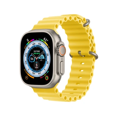 Dây đeo silicone chắc chắn kết hợp cùng 3 màu sắc trẻ trung, nổi bật biến Apple Watch Ultra trở thành một trong những mẫu đồng hồ thông minh sở hữu bề ngoài thời thượng nhất của nhà Táo từ trước đến nay. Khung viền Titanium vừa giúp tôn thêm vẻ ngoài hiện đại vừa đảm bảo độ bền bỉ cho chiếc đồng hồ thế hệ mới.