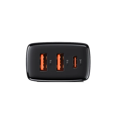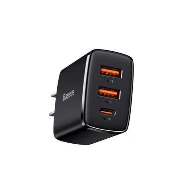 Bạn đang xem Củ sạc Baseus Compact 3 cổng 2 x USB-A + USB-C - 30W màu Đen