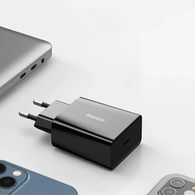 Củ sạc Baseus Super SI (kèm cáp USB-C to Lightning 1M) - 20W trang bị cổng sạc USB-C với tốc độ sạc nhanh lên đến 20W, khiến việc sạc thiết bị sẽ nhanh hơn nhiều khi so sánh với những củ sạc thông thường khác.
