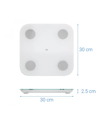 Cân thông minh Xiaomi Compositson Scale 2 có màu trắng trang nhã, thiết kế tối giản. Với kích thước 300x300x25mm nhỏ gọn, dễ dàng để bất cứ vị trí nào quanh nhà hay mang đi bất kỳ đâu. Dù trọng lượng chỉ khoảng 1,7kg nhưng với chất liệu nhựa ABS có độ bền cao và kính chịu lực chống rạn nứt giúp cân chịu được tải trọng lớn.