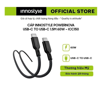 Đánh giáCÁP INNOSTYLE POWERNOVA USB-C TO USB-C 1.5M 60W – ICC150