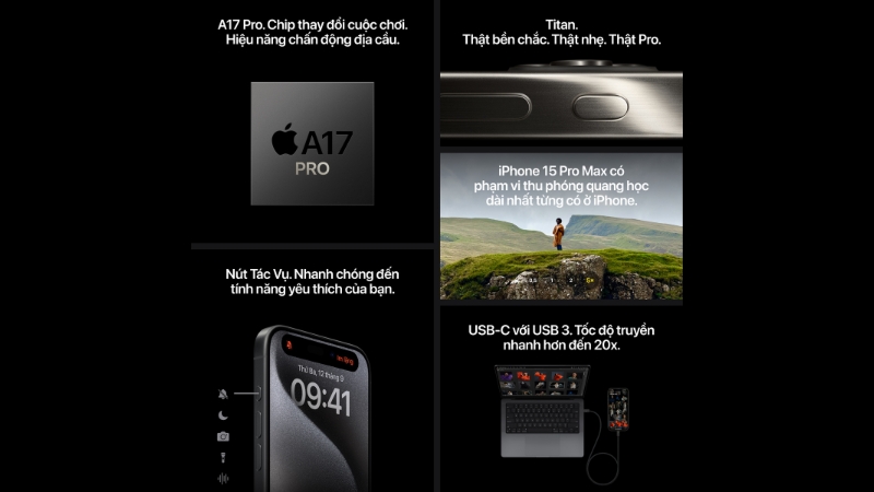 1.4 Bộ vi xử lý A17 Pro mạnh mẽ