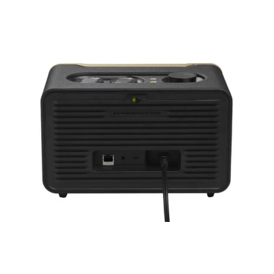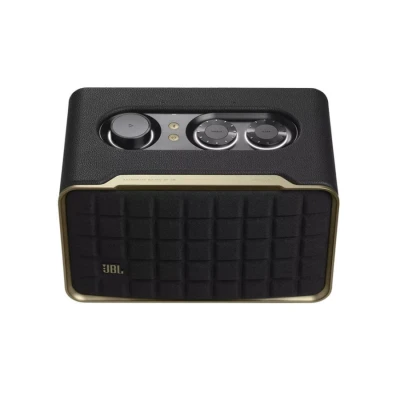 Loa Authentics 200 lấy cảm hứng từ dòng loa classic di động phổ biến từ nhà JBL. Chất liệu nhôm đúc cao cấp, cạnh viền kim loại ánh màu vàng đồng, thân loa được hoàn thiện họa tiết da.