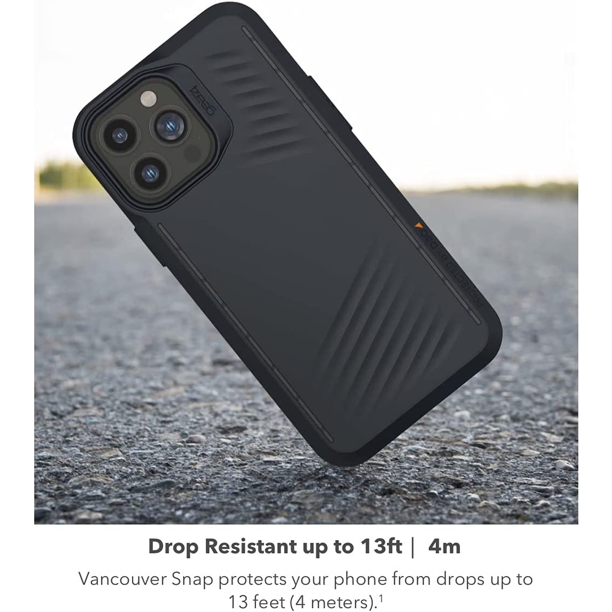 Ốp lưng Gear 4 D3O Vancouver Snap được UL chứng nhận tương thích cực tốt với sóng từ 5G và có thể sạc không dây, cho phép người dùng dễ dàng sạc pin iPhone mà không cần tháo ốp.