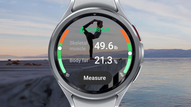 - Phân tích thành phần cơ thể: Galaxy Watch 6 Classic được trang bị cảm biến BIA giúp phân tích các thành phần cơ thể, bao gồm 7 chỉ số BMI, tỷ lệ cơ xương, tỷ lệ mỡ, lượng nước trong cơ thể và tỷ lệ trao đổi chất cơ bản. Tính năng này giúp người dùng theo dõi tình trạng sức khỏe và xây dựng kế hoạch tập luyện hiệu quả.