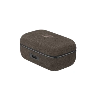 ào đó, phần hộp sạc của tai nghe Sennheiser Momentum True Wireless 4 được bọc một lớp vải dệt thanh lịch và cao cấp cùng logo Sennheiser. Hộp sạc này có kích thước nhỏ gọn, người dùng có thể dễ dàng cầm nắm, cất giữ trong túi khi mang theo bên mình. Ở mặt trước của hộp sạc là cổng sạc USB-C cùng đèn báo tình trạng pin giúp người dùng dễ dàng sạc và theo dõi pin. Ở phiên bản lần này Sennheiser trang bị 3 màu sắc, bao gồm: Trắng, đen và đồng giúp người dùng dễ dàng lựa chọn cho phù hợp với phong cách riêng của mình.