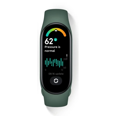 Redmi Smart Band 7 được trang bị màn hình AMOLED 1,62 inch với độ phân giải 192 x 490 pixel cùng mật độ điểm ảnh lớn 326 PPI và độ sáng 500 nits mang lại khả năng hiển thị hiệu quả, giúp hình ảnh hiển thị rõ nét ngay cả ngoài trời.