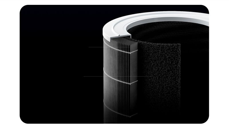 Xiaomi Air Purifier 4 Pro được trang bị bộ lọc HEPA 5 lớp (Lớp lọc chính > Lớp lọc chống virus > Lớp lọc kháng khuẩn > Lớp lọc kháng bụi mịn > Lớp lọc than hoạt tính) cho khả năng lọc bụi siêu mịn với kích thước siêu nhỏ 0.3µm.