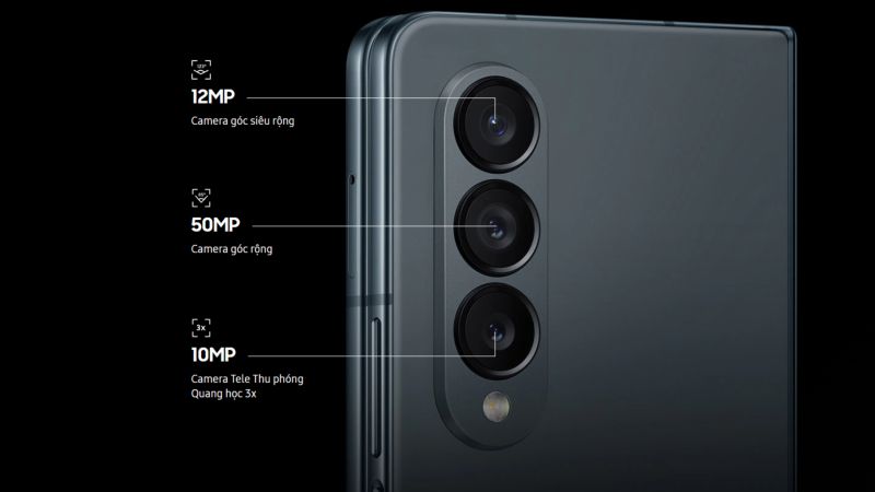 Galaxy Z Fold4 về cơ bản sử dụng hệ thống camera tương tự như Galaxy S22 và Galaxy S22 Plus. Mặt sau là cụm 3 camera với Camera chính 50MP, Camera góc siêu rộng 12MP và một ống kính tele 10MP zoom quang học 3x, thu phóng không gian 30x. Cũng giống như Galaxy S22, bạn có thể tận hưởng các tính năng Chụp đêm để có những bức ảnh đẹp hơn trong điều kiện thiếu sáng. Và với chế độ FlexCam, bạn có thể chụp ảnh rảnh tay hoặc sử dụng chế độ chụp ảnh tự sướng bằng Camera sau trong khi sử dụng màn hình hiển thị để xem trước.