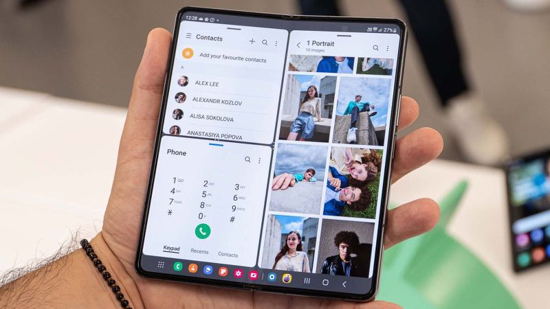 Trên Z Fold4, các dịch vụ phổ biến của Google và Microsoft có giao diện người dùng giống máy tính để bàn hơn, phân chia các thành phần ứng dụng khác nhau trên màn hình chính 7.6 inch một cách có mục đích. Giống như bản tiền nhiệm, bạn có thể chạy tối đa ba ứng dụng trên màn hình lớn 7.6 inch cùng một lúc, dễ dàng kéo và thả ảnh và liên kết từ ứng dụng này sang ứng dụng khác.