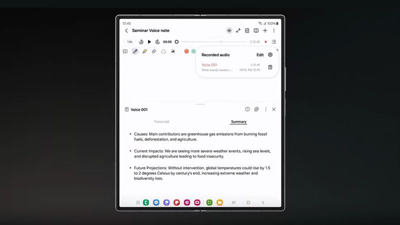 Samsung Galaxy Z Fold6 không chỉ sở hữu thiết kế đột phá và hiệu năng mạnh mẽ mà còn mang đến một loạt tính năng AI sáng tạo, được ứng dụng vào nhiều các tính năng khác nhau, giúp nâng cao hiệu quả công việc và giải trí hàng ngày của người dùng. Điểm nhấn đầu tiên là khả năng hỗ trợ soạn thảo văn bản thông minh có khả năng gợi ý, người dùng có thể dễ dàng hoàn thành email, báo cáo hay tin nhắn chỉ trong vài thao tác đơn giản. Chưa dừng lại ở đó, Galaxy Z Fold6 còn hỗ trợ tìm kiếm thông tin nhanh chóng và hiệu quả. Người dùng chỉ cần khoanh tròn nội dung cần thiết trên màn hình, sau đó AI sẽ tự động tìm kiếm và cung cấp những thông tin liên quan.